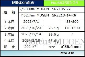 ■種親:♂93.0mm SR2105 × ♀52.7mm SR2213早期